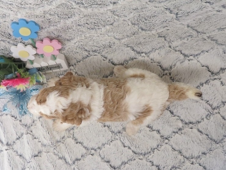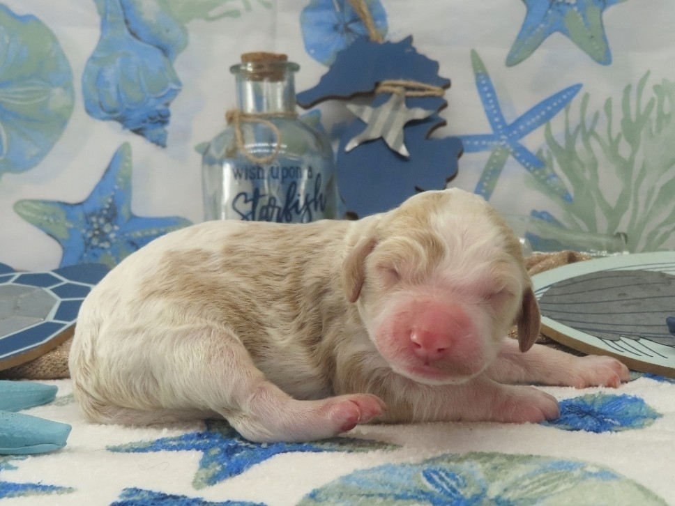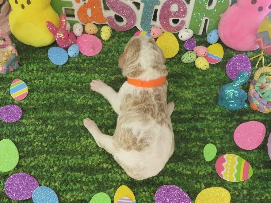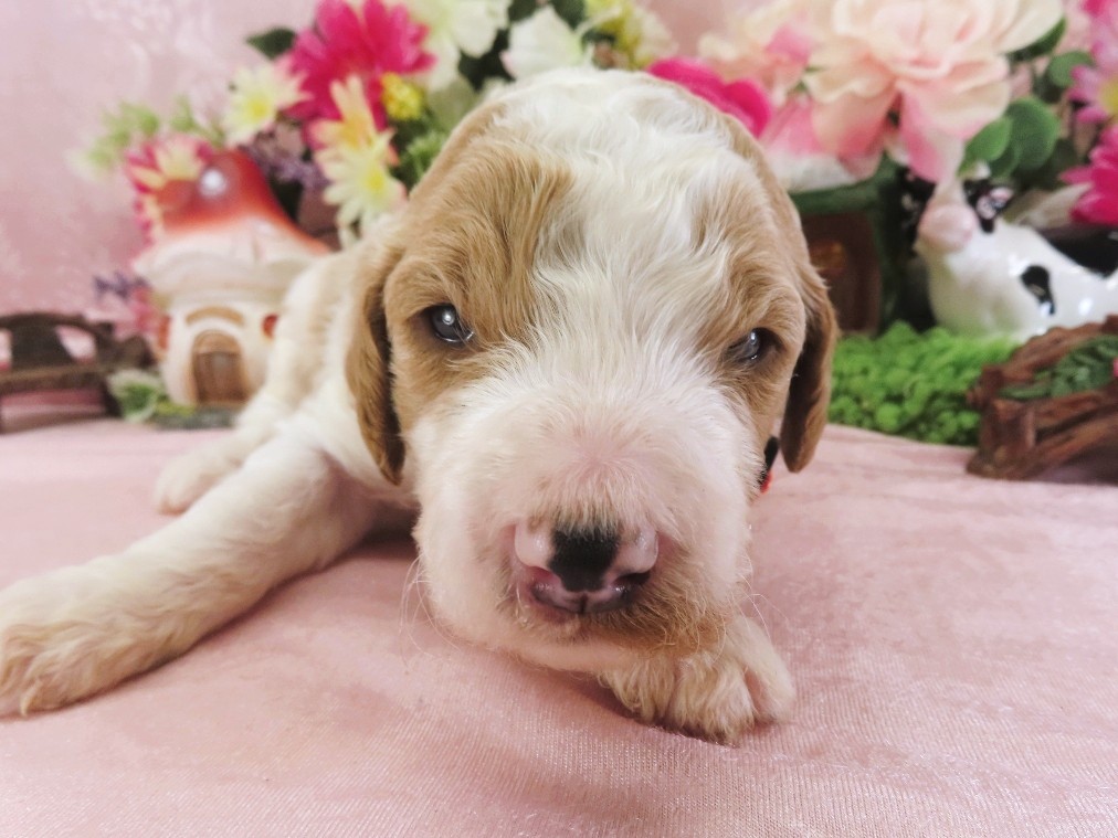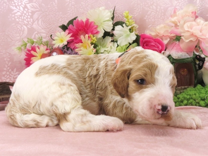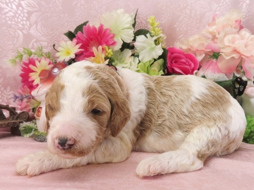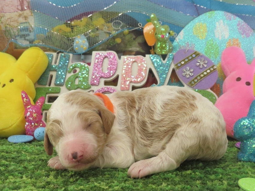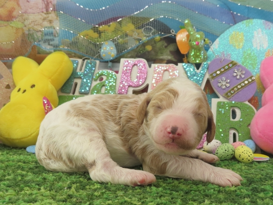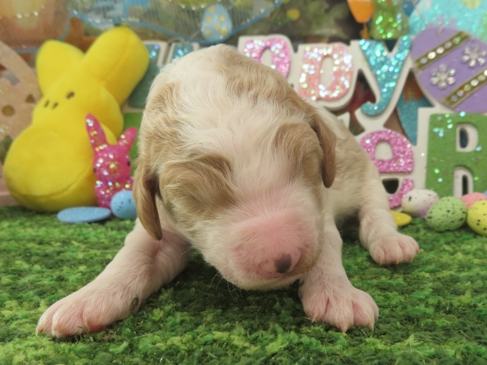 Ada – Female Tan/Cream Spotted Standard Sized Poodle Puppy – Woof!! I’m Sold to Rosy!! / Classy x Austin, Female Puppies, New Poodles / By Christine 4.5 WK: 4 WK: 3 WK: 2 WK: 1 WK: