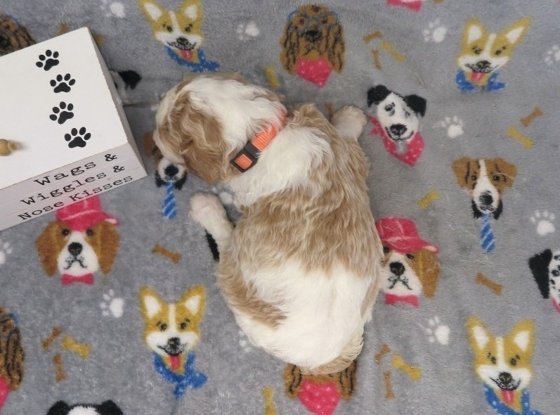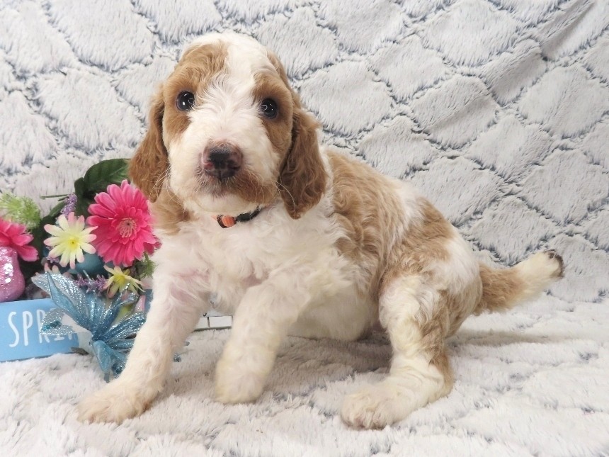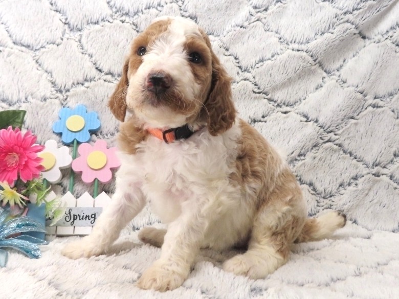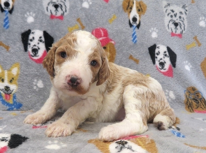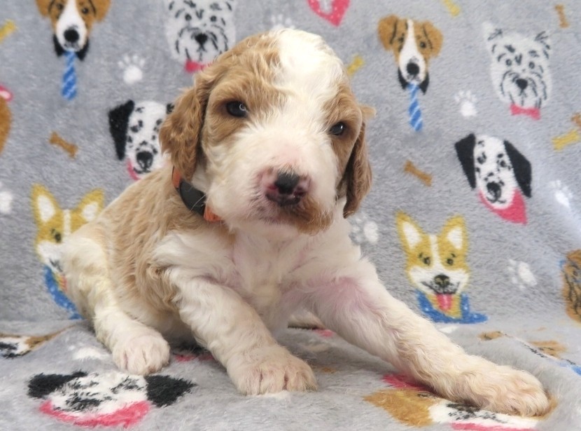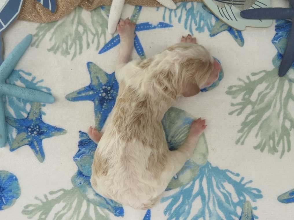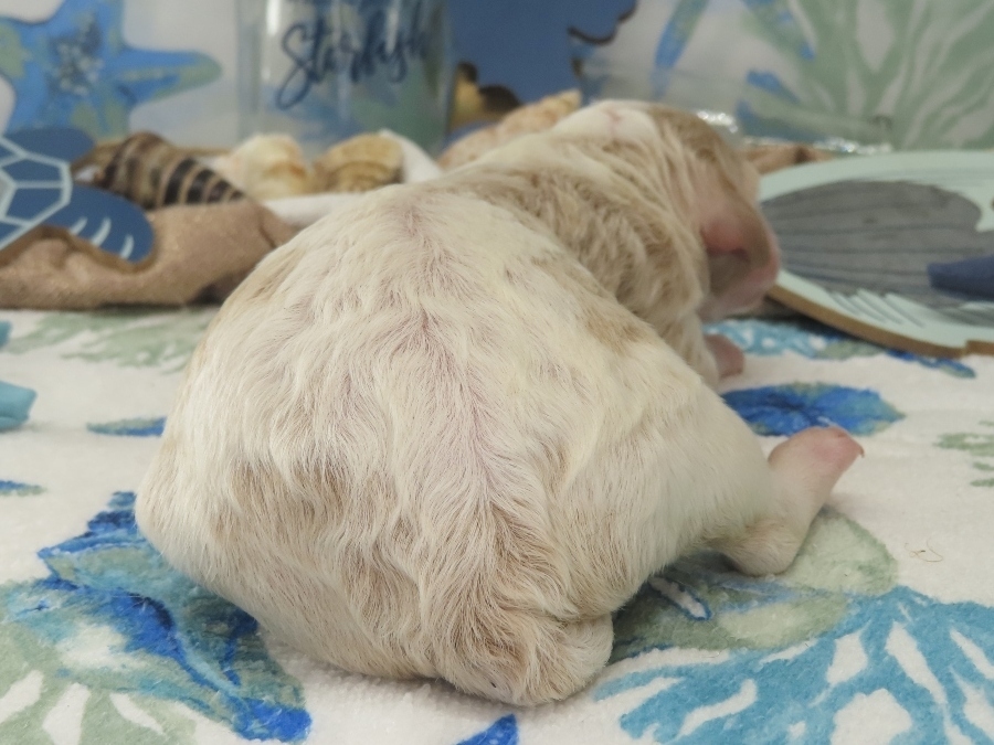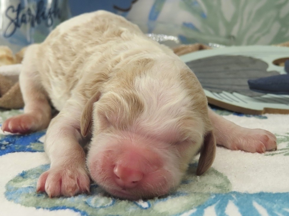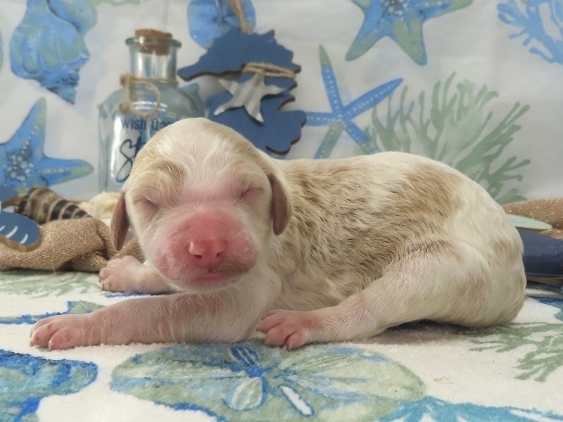 Ada – Female Tan/Cream Spotted Standard Sized Poodle Puppy – Woof!! I’m Sold to Rosy!! / Classy x Austin, Female Puppies, New Poodles / By Christine 4.5 WK: 4 WK: 3 WK: 2 WK: 1 WK: