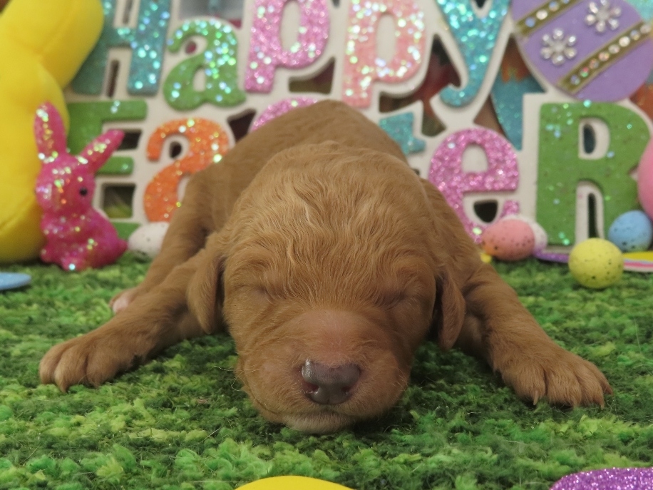 Anastasia – Female Red/Apricot Standard Sized Poodle Puppy – Woof!! I’m Sold to Cochise!! / Classy x Austin, Female Puppies, New Poodles / By Christine 4.5 WK: 4 WK: 3 WK: 2 WK: 1 WK: